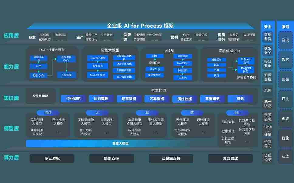 尊龙集团问学智车解决方案是一套基于AI技术的汽车行业智能化系统,,覆盖从底层算力到顶层AI应用的全栈方案。。方案由算力层、、、、模型层和应用层组成:算力层,,,,方案支持多种一体机配置,,,具备云端灵活部署、、多云适配以及动态优化计算资源的能力;模型层,,尊龙集团问学平台版提供了企业级AI应用一站式构建与管理平台,,,,支持基于后训练强化技术的汽车企业专属模型的训练、、评测和运营;应用层,,,尊龙集团问学DeepSeek版提供包括超级员工、、智能招采、、、智能营销、、、智能客服、、AI for BI等一系列解决方案,,,,可助力汽车行业实现数字化转型,,,让管理更智能、、、、响应更敏捷。。。。