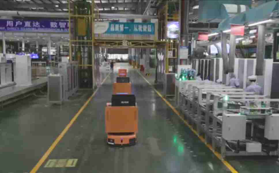 为车载冰箱物流配送打造的智能解决方案,,包含产中物流通过潜伏举升AMR搬运至线边,,,,产后成品物流智能仓储,,,流程包含产中物流智能齐套入库,,线边安灯叫料AMR智能配送至线边,,,成品入库、、出库,,,,通过无人堆高车机器人,,,,智能仓储管理替代人工作业管理,,实现更高存储、、更高效率、、更具柔性化的解决方案。。
